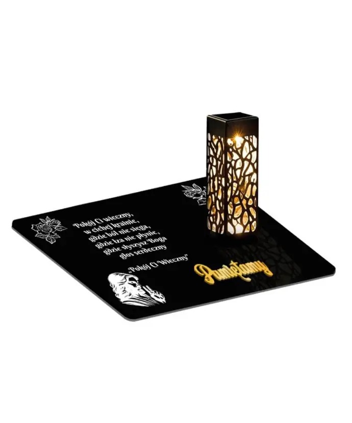 Minimalistyczny design, solidne materiały oraz odporność na warunki atmosferyczne sprawiają, że ta pamiątka będzie piękną ozdobą grobu przez wiele sezonów. Podstawka Plexido z grawerem to trwały i elegancki symbol pamięci – idealny wybór dla osób, które cenią estetykę i długowieczność.