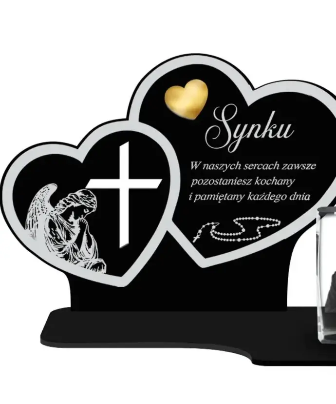 Znicz Premium Statuetka Dwa Serca Kryształowe Zdjęcie 3D Na Grób