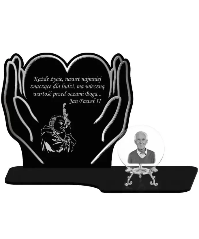 Znicz Premium Statuetka Dłonie Srebrne Kryształowa Kula Zdjęcie 3D Na Grób
