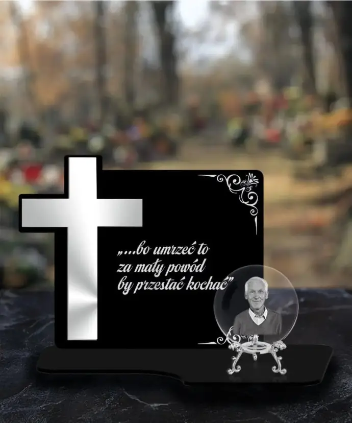 Znicz Premium Krzyż Srebrna Kryształowa Kula Zdjęcie 3D Na Grób