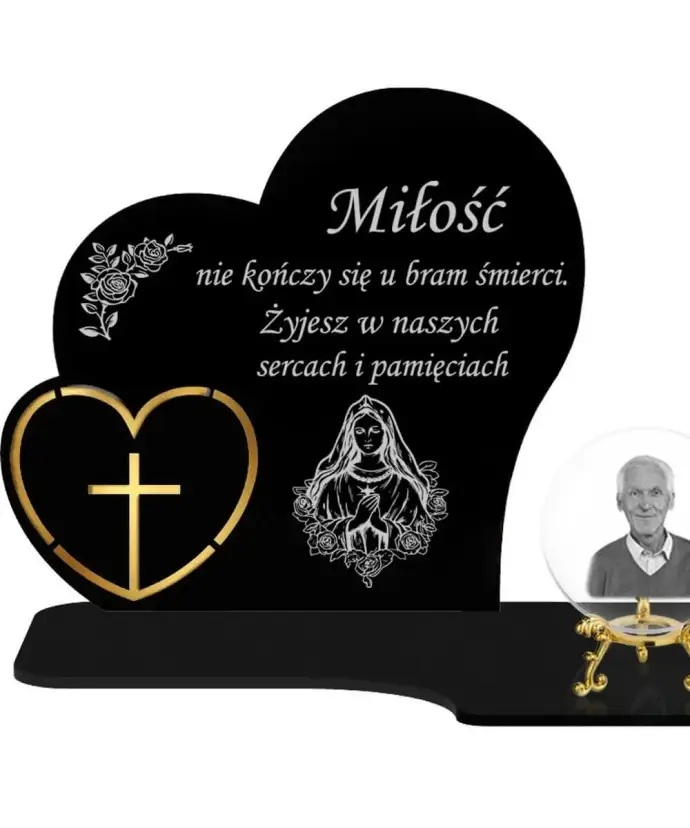 Znicz Premium Statuetka Serca Złote Kryształowa Kula Zdjęcie 3D Na Grób