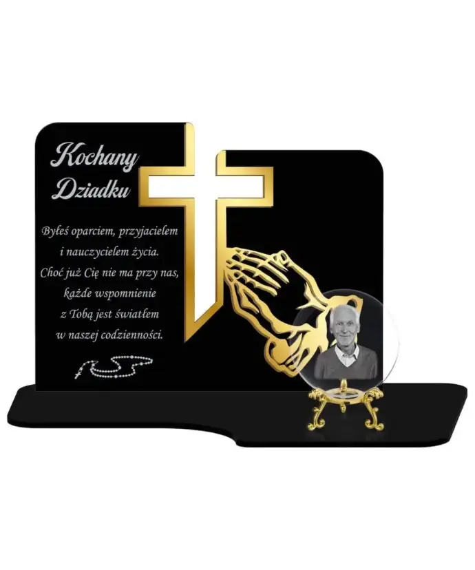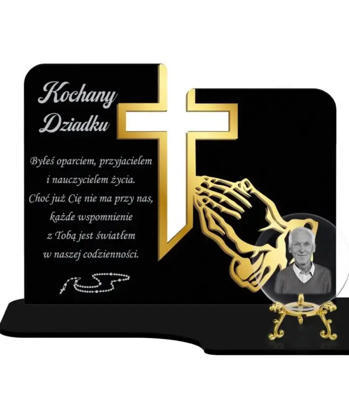 Znicz Premium Statuetka Krzyż Złoty Kryształowa Kula Zdjęcie 3D Na Grób