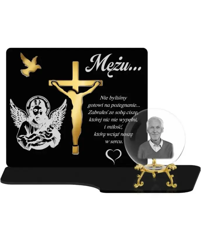 Znicz Premium Statuetka Krzyż Jezus Złota Kryształowa Kula Zdjęcie 3D Na Grób