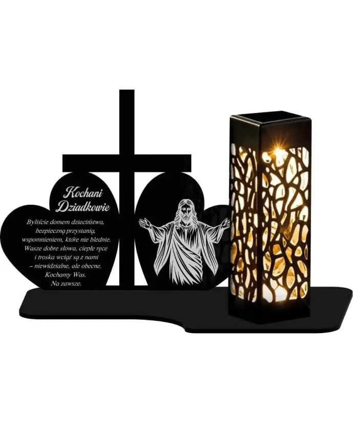 Solar LED Kerze Grabstein Statuette Kreuz und zwei Herzen Allerheiligen