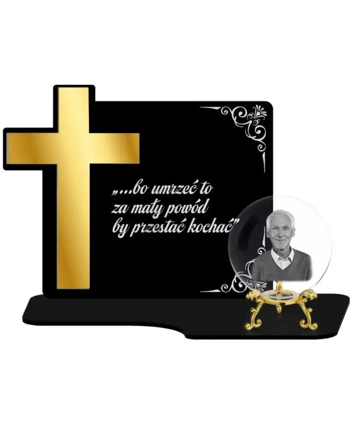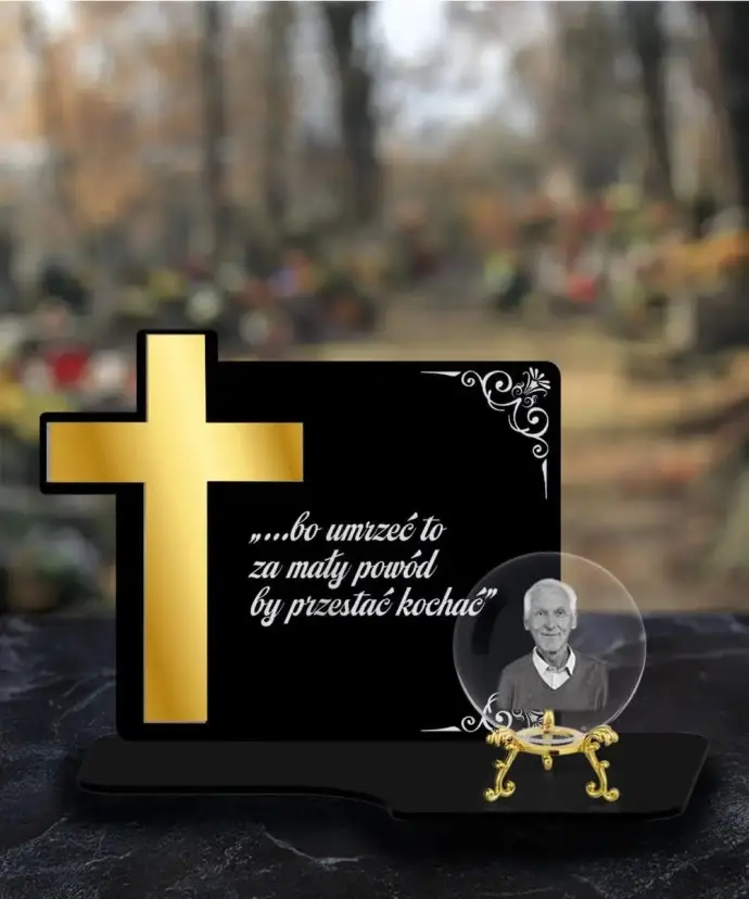 Znicz Premium Krzyż Złoty Kryształowa Kula Zdjęcie 3D Na Grób