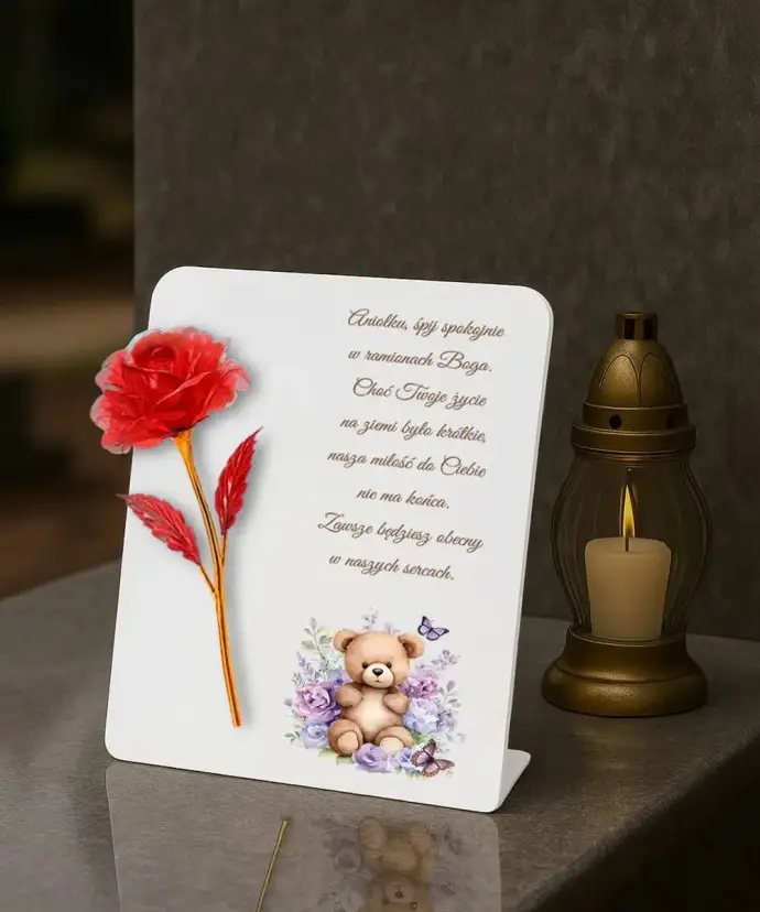 Tabliczka Pamiątkowa z Różą – Dekoracja Nagrobna Premium ?
