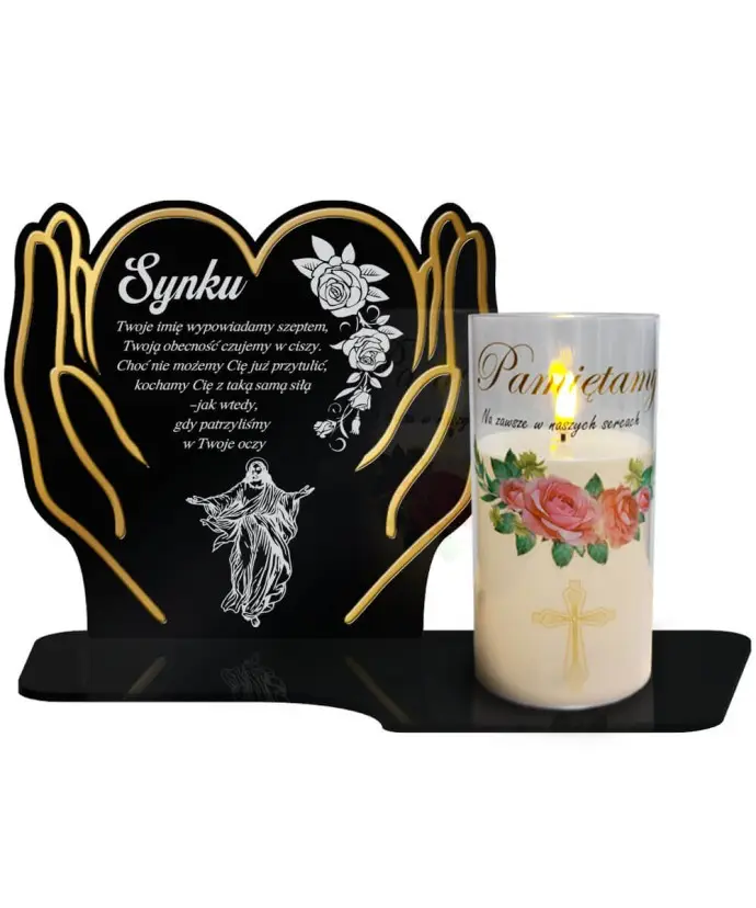 Znicz Premium Statuetka Led Dłonie Świeca Pamiętamy Na Cmentarz
