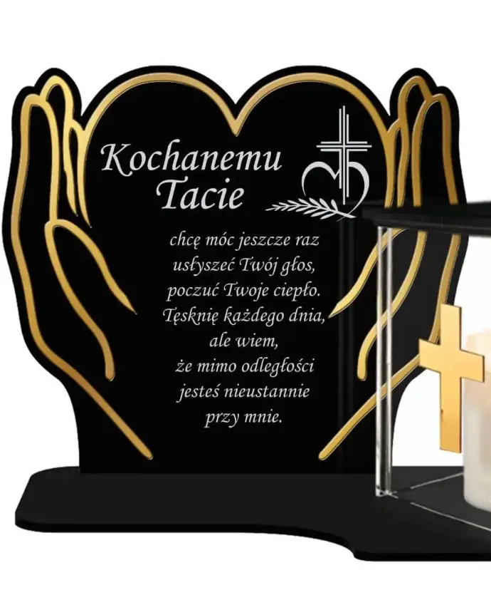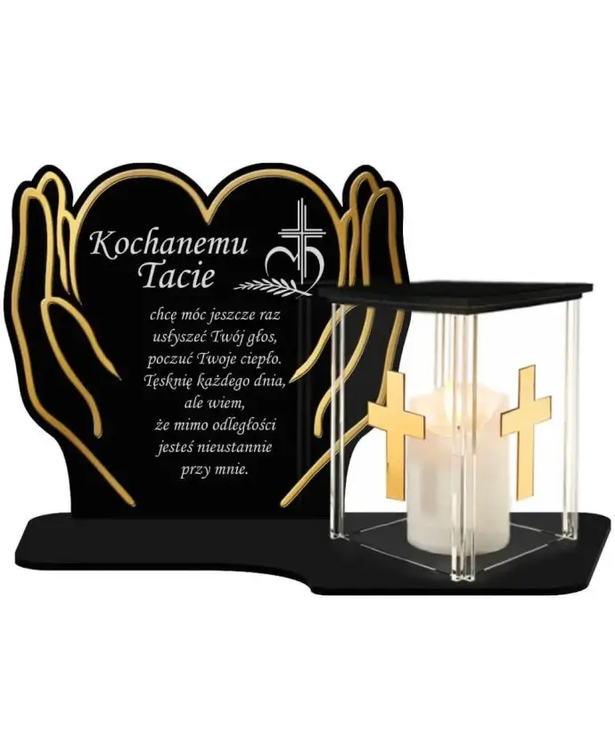 Znicz z Dedykacją Premium Dłonie Złote Domek Świeca Led Na Cmentarz Grób