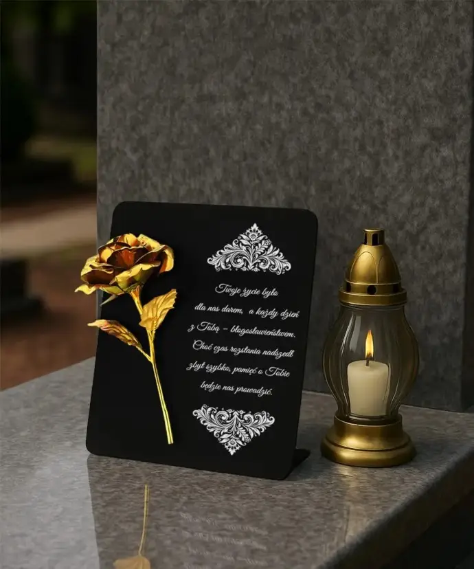 Tabliczka pamiątkowa z różą – elegancka dekoracja nagrobna premium