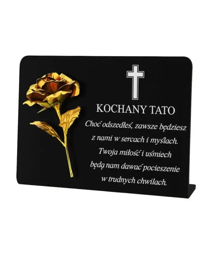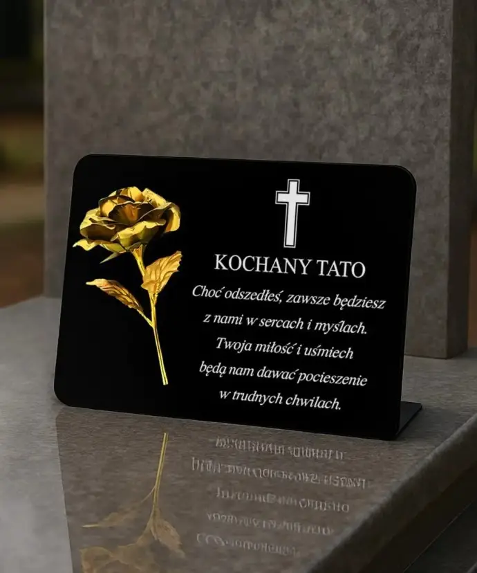 Tabliczka pamiątkowa z różą marki Wieczne Znicze to wyjątkowa ozdoba nagrobna, która w elegancki i subtelny sposób upamiętnia bliską osobę. Łączy prostotę i elegancję, a dzięki wzruszającej sentencji staje się symbolem miłości i pamięci, który na długo pozostaje w sercu.