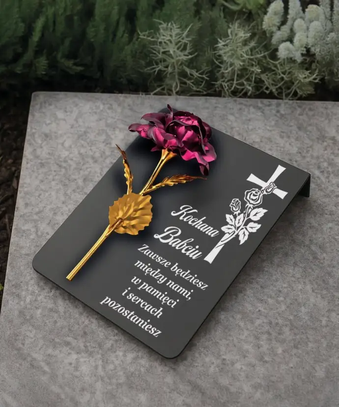 Tabliczka pamiątkowa z różą – elegancka dekoracja nagrobna premium