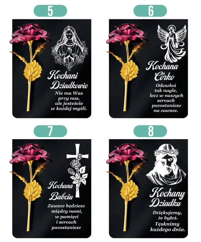 Tabliczka pamiątkowa z różą marki Wieczne Znicze to wyjątkowa ozdoba nagrobna, która w elegancki i subtelny sposób upamiętnia bliską osobę. Łączy prostotę i elegancję, a dzięki wzruszającej sentencji staje się symbolem miłości i pamięci, który na długo pozostaje w sercu.