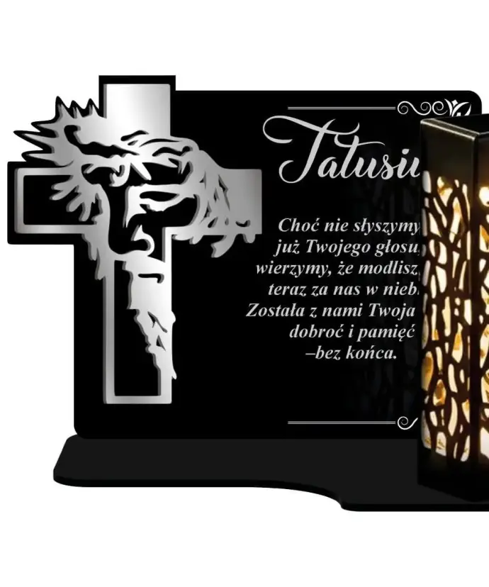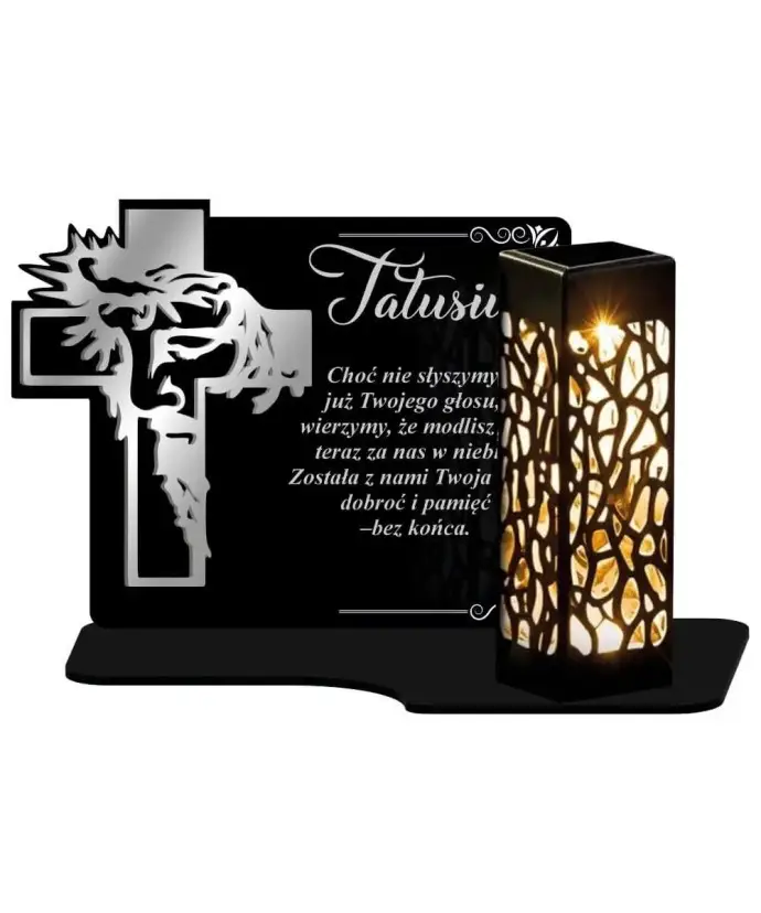 Wieczny Znicz Solarny Statuetka Srebrny Krzyż na Grób Wszystkich Świętych