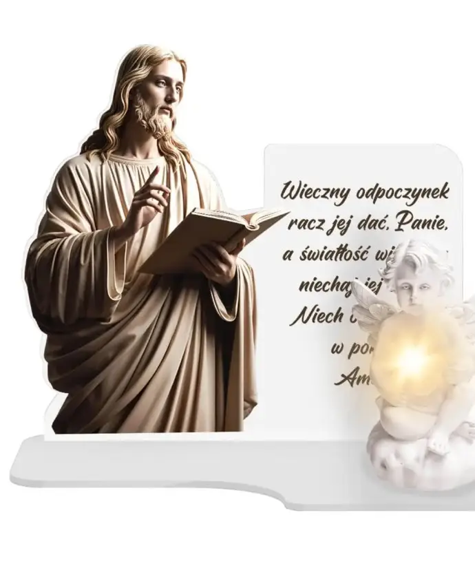 Wieczny Znicz Premium Jezus Na Cmentarz Grób Anioł LED Dla Dziecka