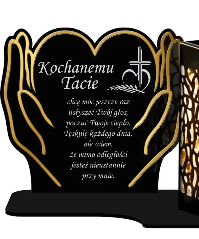 Duży Znicz Solarny XL 18 cm Premium Serce W Dłoniach Złote Na Cmentarz
