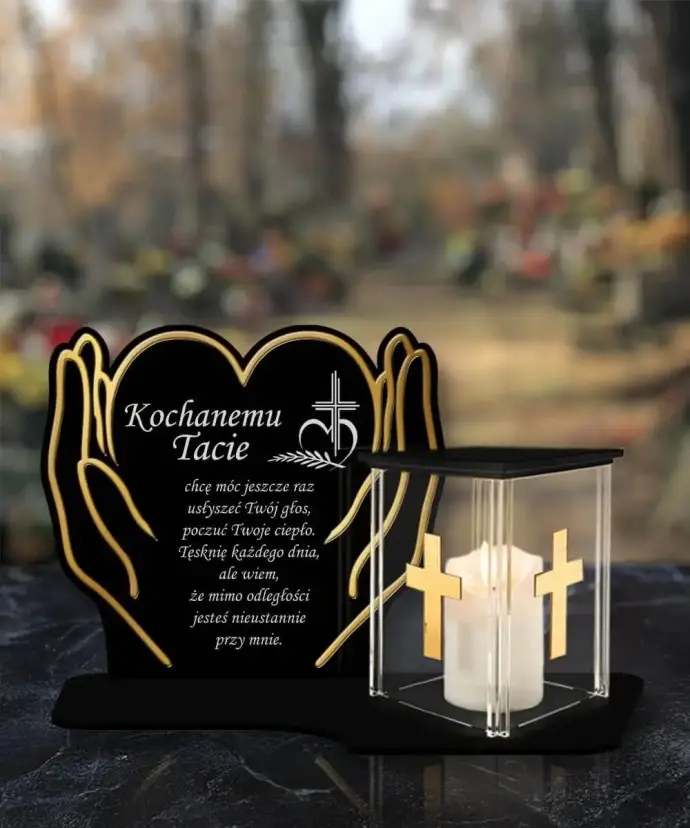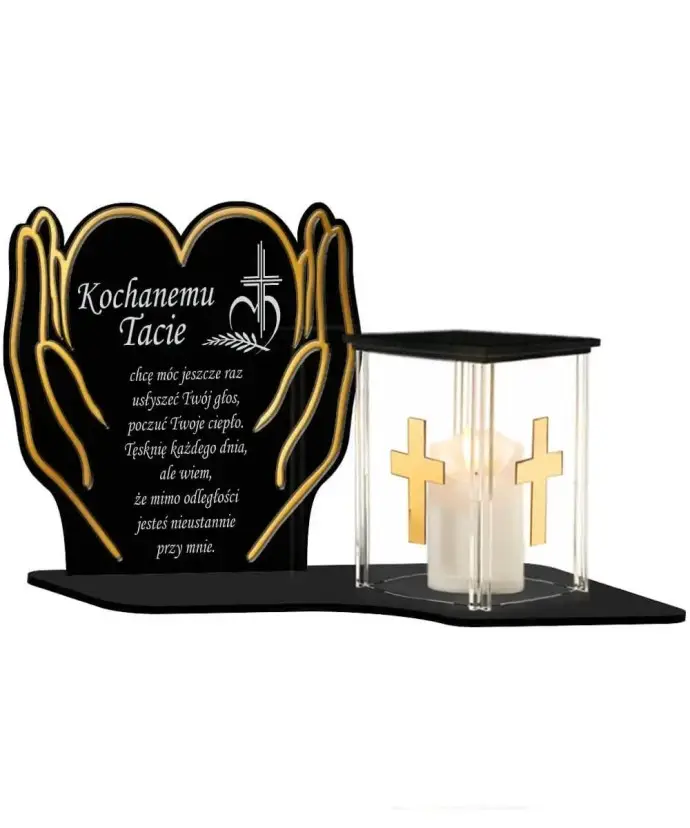 Znicz z Dedykacją Dłonie Złote Domek Świeca Led Na Grób Wszystkich Świętych