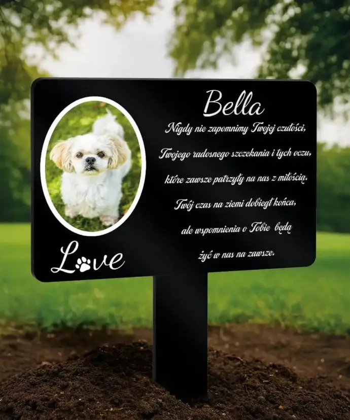 Tabliczka Pamiątkowa Ze Zdjęciem na Grób Psa Personalizowany Znicz