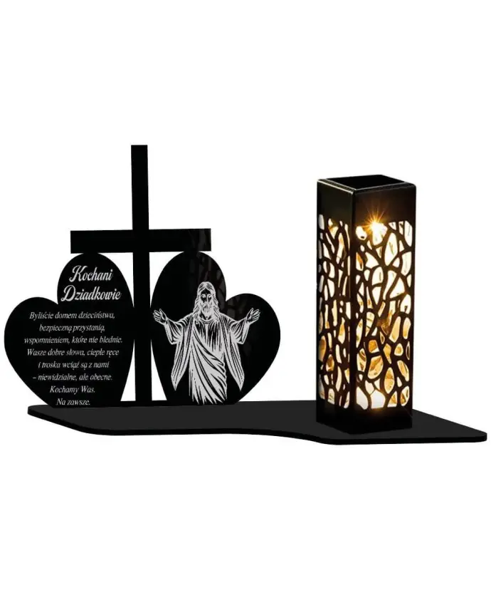 Znicz Solarny LED Krzyż I Dwa Serca Wszystkich Świętych Statuetka Nagrobna