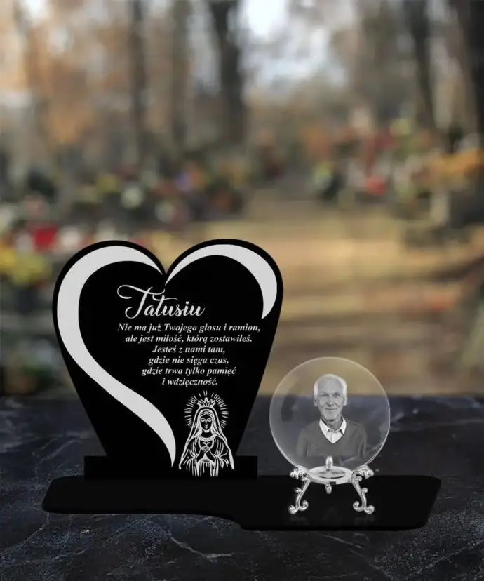 Precyzyjna technika grawerowania wewnątrz kryształu pozwala wiernie odwzorować szczegóły portretu, nadając kuli niepowtarzalny i osobisty charakter. To nie tylko ozdoba, ale przede wszystkim trwały symbol pamięci, który w piękny sposób oddaje hołd bliskim, pozostając wyrazem miłości i przywiązania na długie lata.