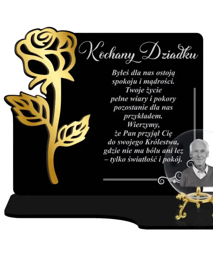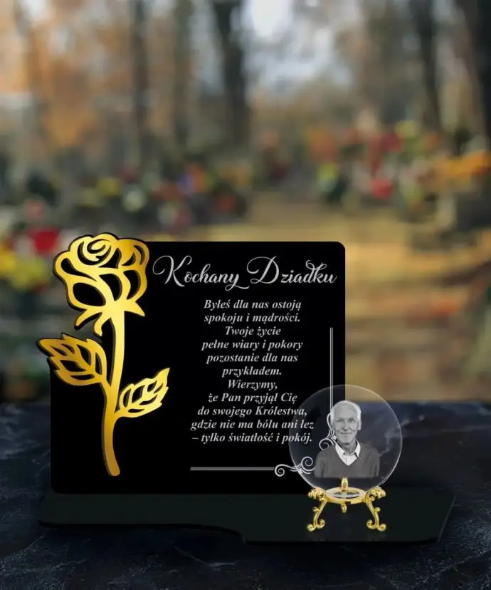 Wieczny Znicz Premium Statuetka Róża Złota Kryształowa Kula Zdjęcie 3D